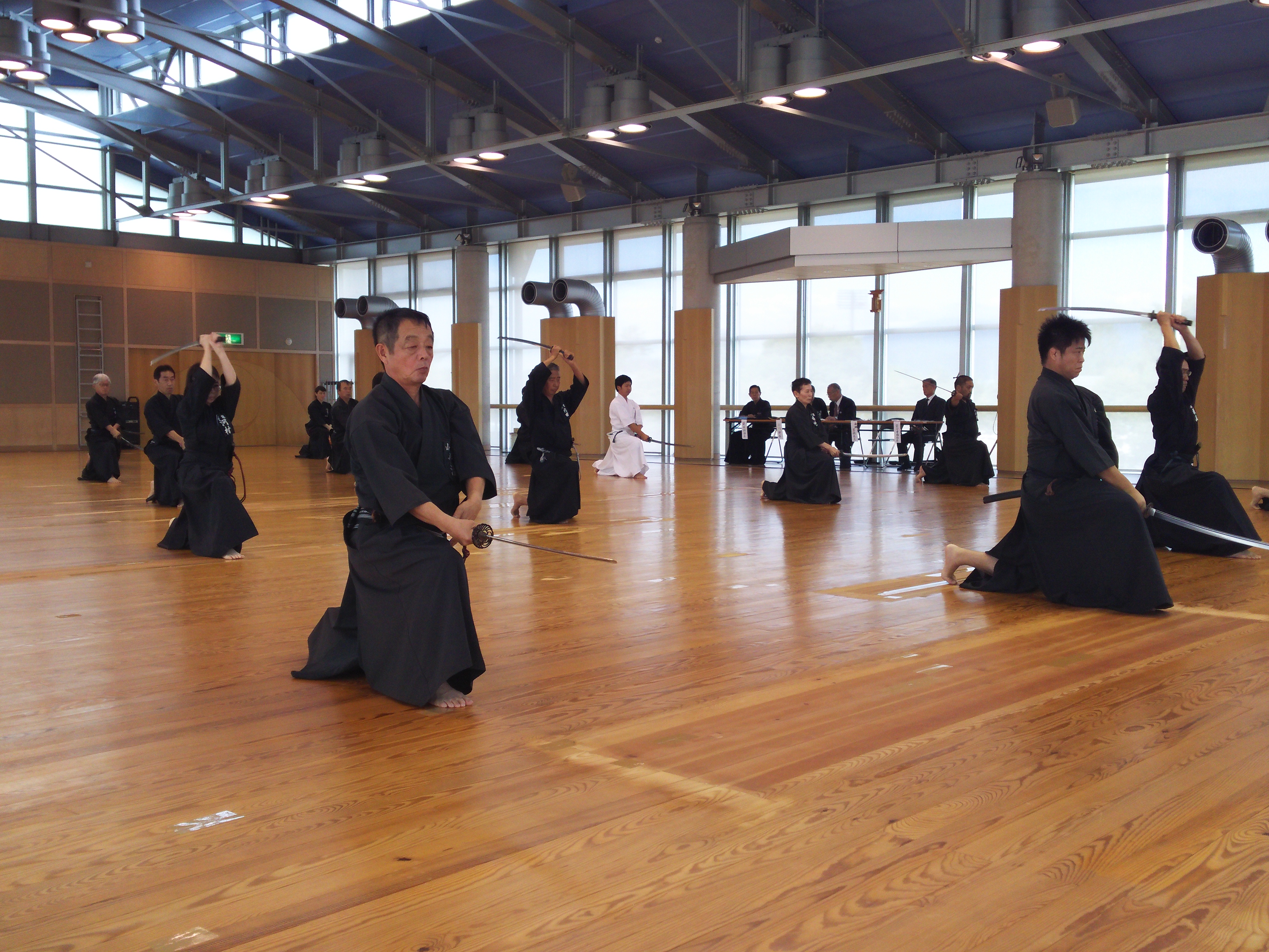 午前の部は「全剣連居合」と「無外流居合+刀の形」を重点的に指導