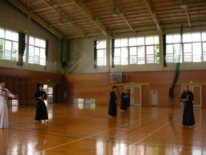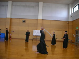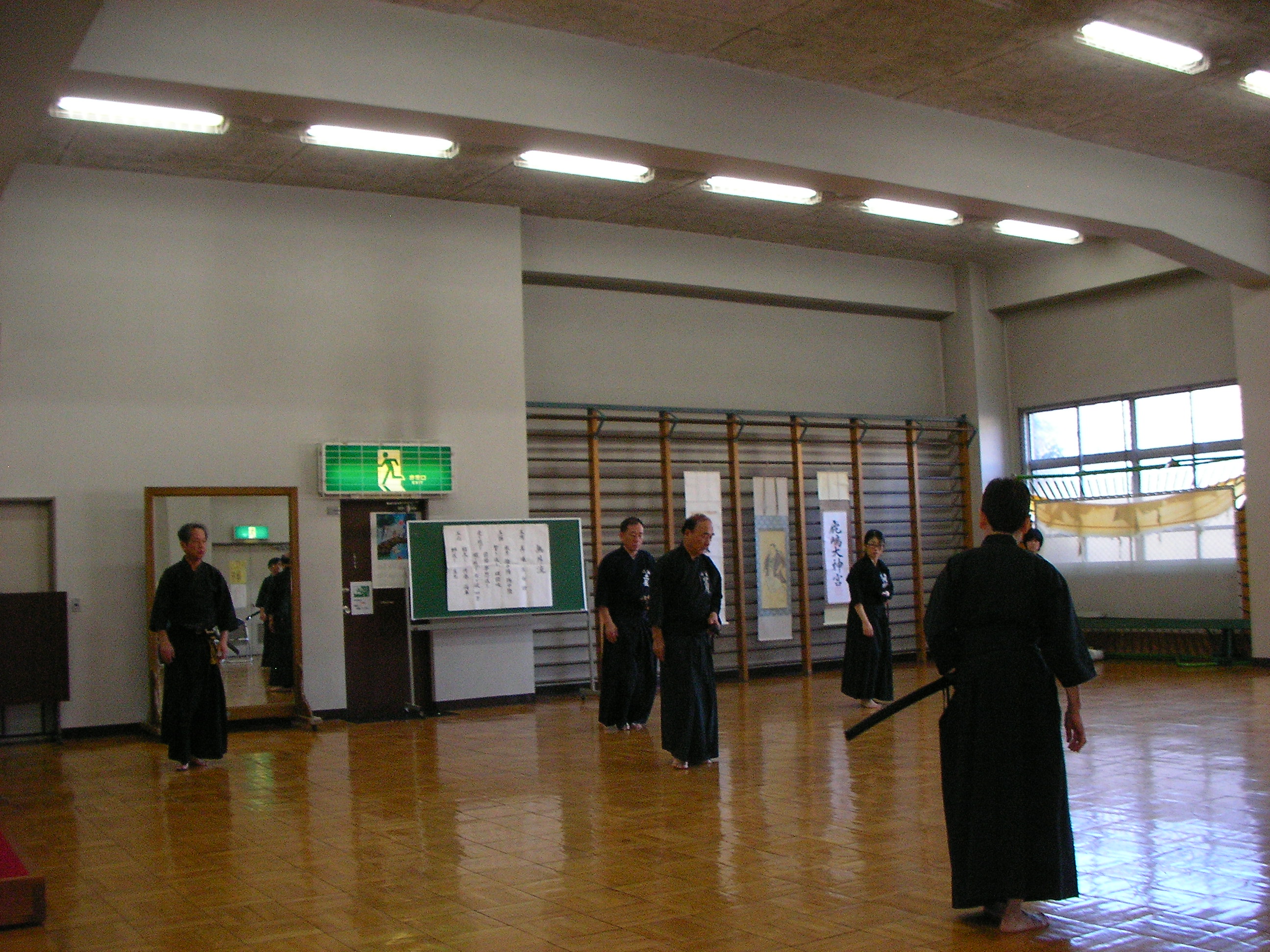 平成28年7月17日(日)猛暑の中、1日稽古会を開催しました。 当地は最高気温を更新する5本の指に入る地域で、盆地特有の 会場は、旧相生小学校の体育館で半端でない暑さの中、落伍者も無く 全員無事稽古を終了しました。全剣連居合と無外流居合(古流)をM先生から 熱心な指導を受けることが出来、それぞれ大きな収穫を得た事と思います。 特別企画として、有志による抜刀の「藁10本斬り」を体験しました。 刃筋と間合いを実践で学習できた良い時間だったと思います。