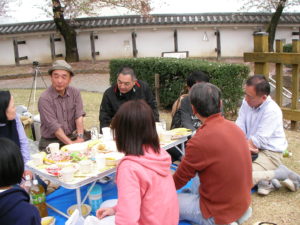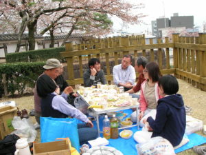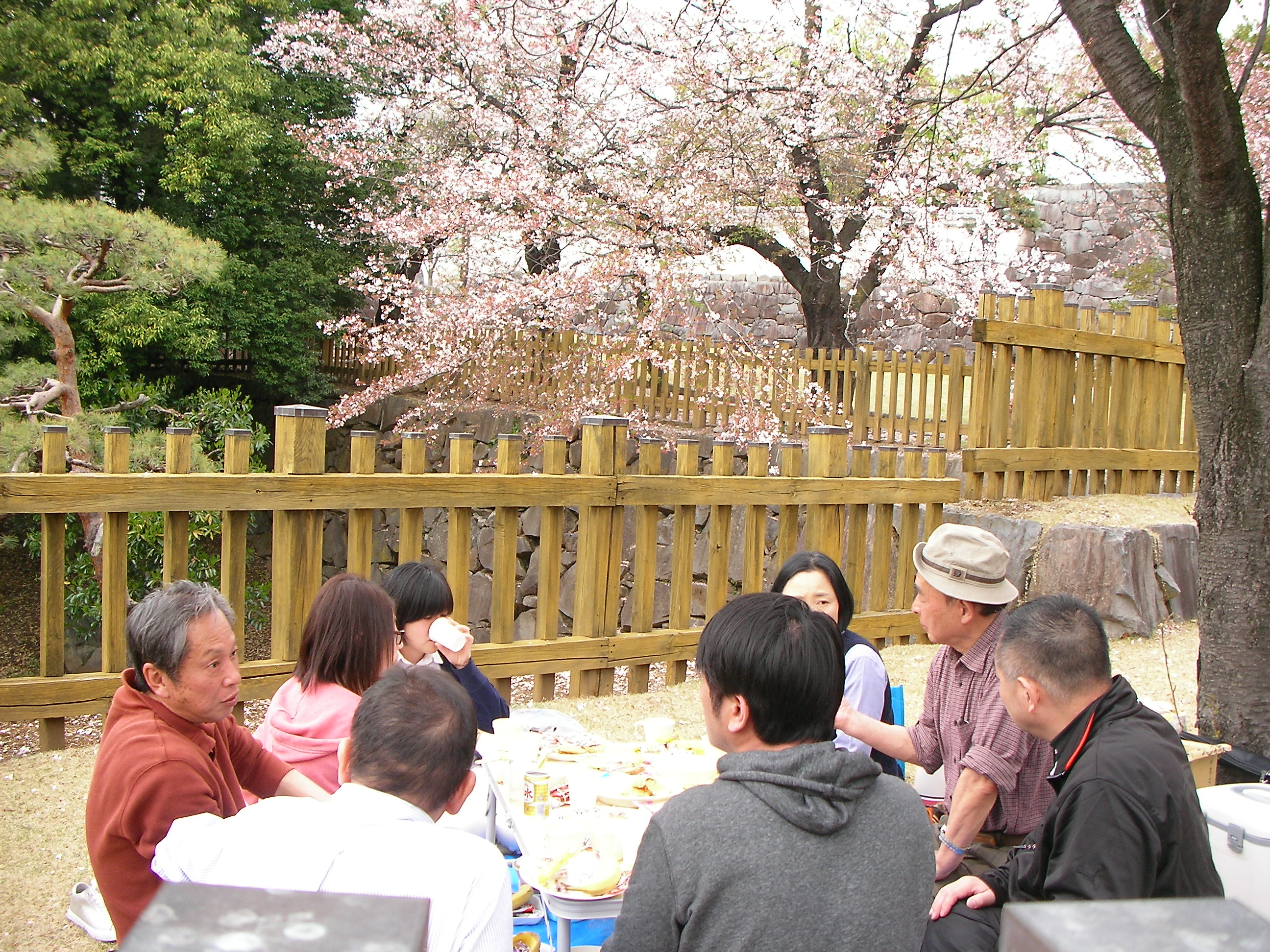 花見を開催しました。舞鶴公園城址で特等席を設定、居合道の
