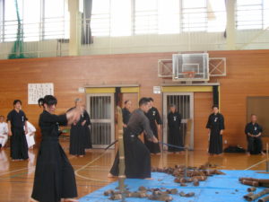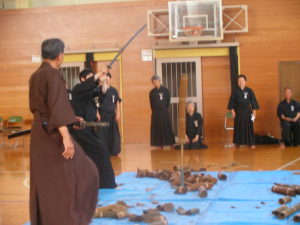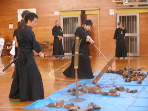 「間合」「刃筋」を体で体得する為に「巻藁」を斬りました。