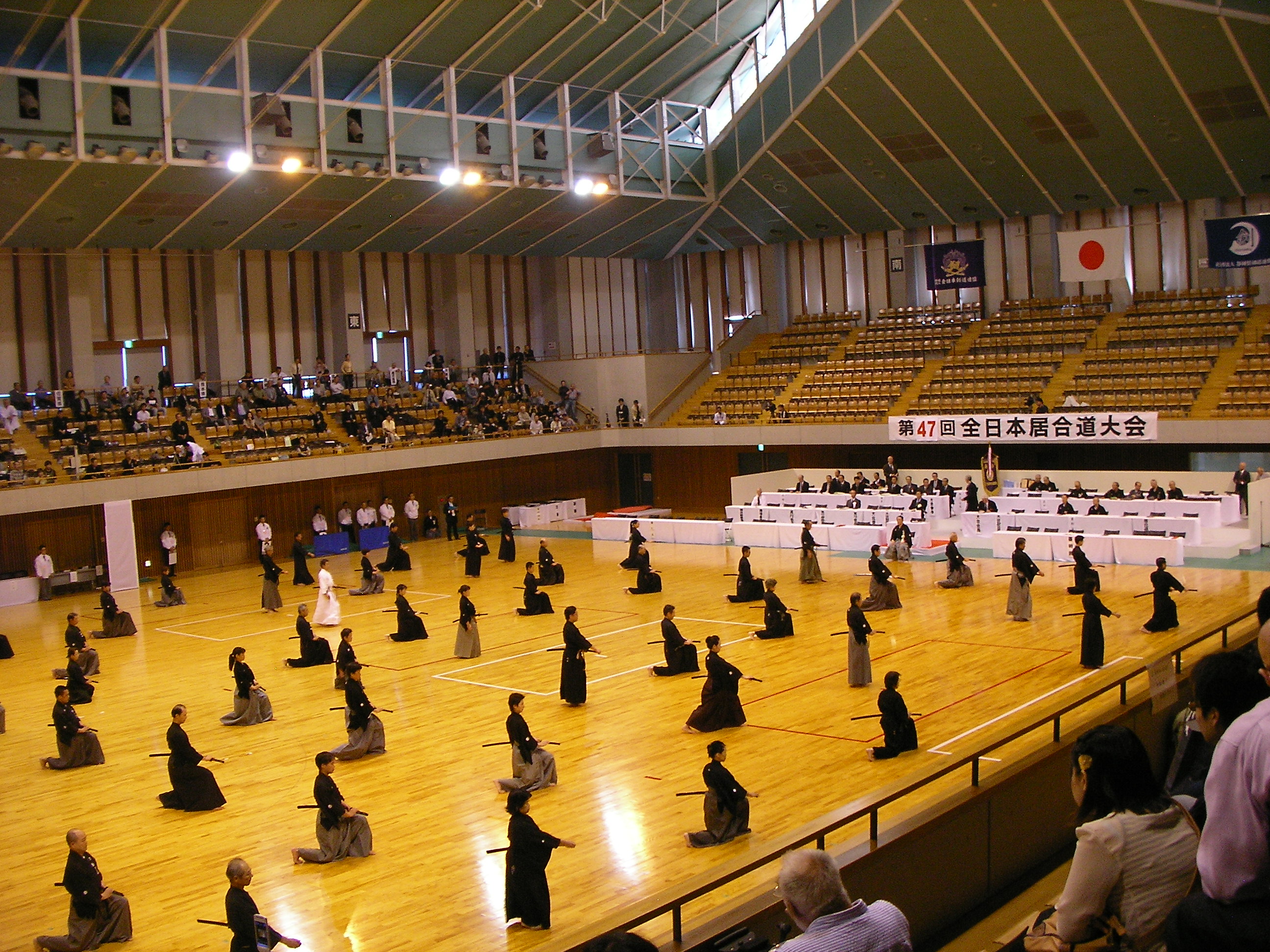 主催地の山梨県剣道連盟・居合道部のスタッフ面々の見事な連携プレイは