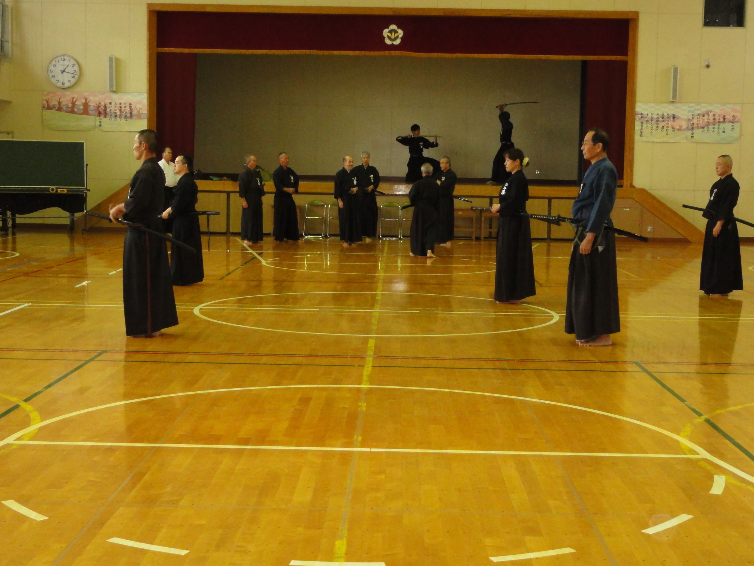 平成24年10月28日、日曜日に青梅市「霞台小学校体育館」で 開催されました。31名の老若男女が終結し、終日熱心に技の 習得に励みました。 前半は「初級」「中級」「上級」に別れ、望月副会長、島副会長、 伊藤会長の指導を受けました。 作法から始まり、それぞれのレベルに合わせた極意を伝授され 常日頃の稽古には無い緊張感と仲間との交流が芽生え、今後の 稽古に意欲が沸きました。