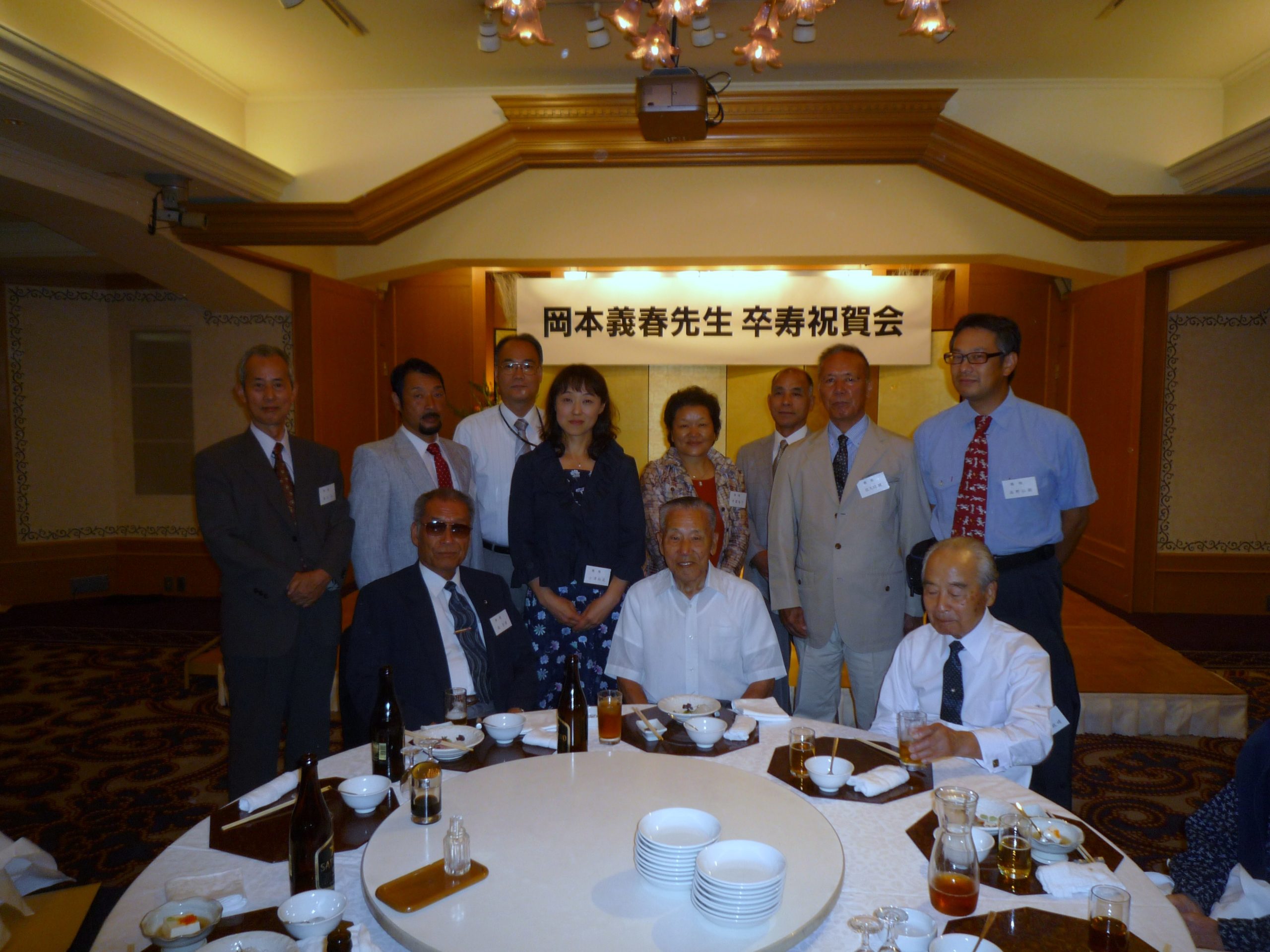 2009年岡本義春先生(中央)天野先生(右)島先生(左)と青梅支部の会員です。